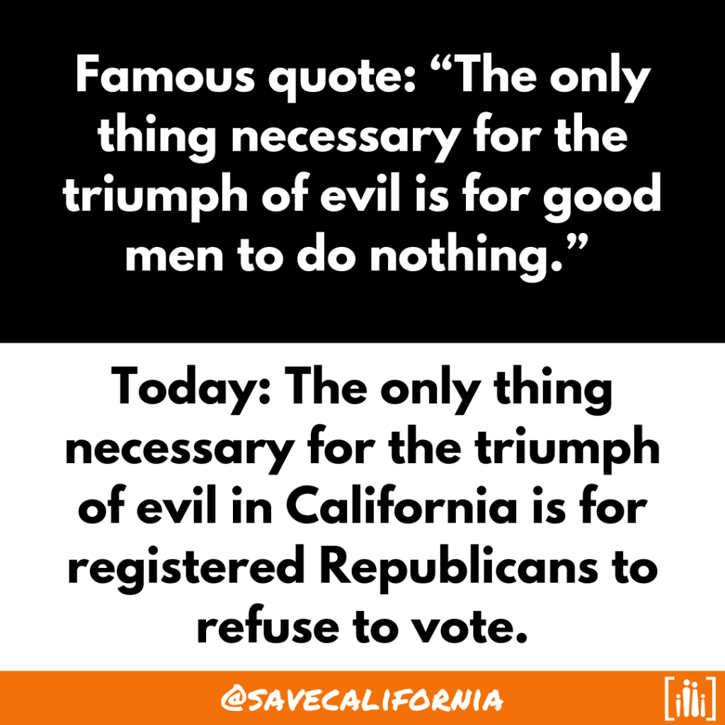 Of California’s 5.8 million registered Republicans, only an estimated 1.8 million had mailed in their ballots by Nov. 3. One year ago, more than 6 million Californians voted for the Republican presidential ticket of Donald Trump and J.D. Vance. Yet this election, only 3.2 million Californians voted NO on the unfair, corrupt Prop. 50 (as of the count on Nov. 6 @ 6:43 p.m).