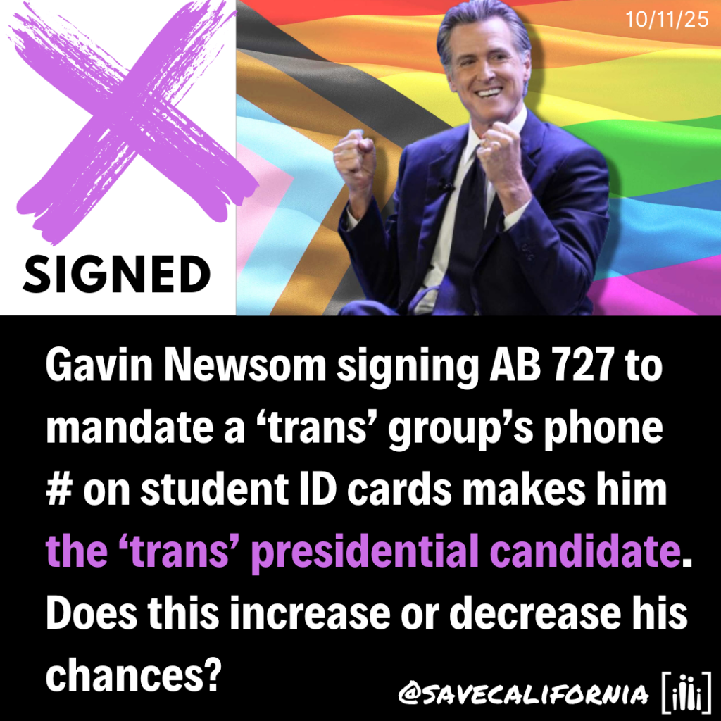 This is not OK!! Newsom has signed into law “trans” ID cards for kids!!!