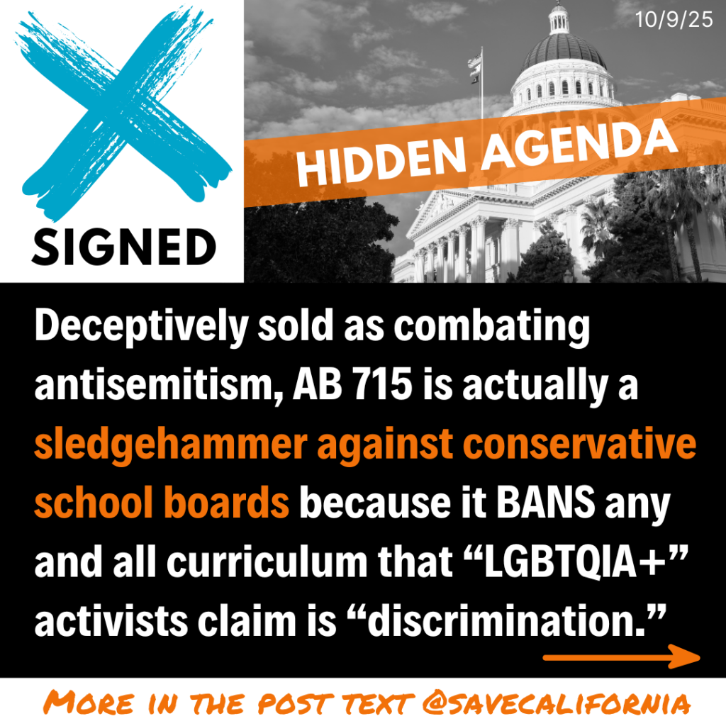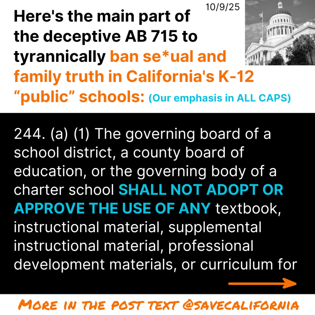 Let no one be deceived… “LGBTQIA+” activists wanted AB 715 so they could sexually indoctrinate children all the more.