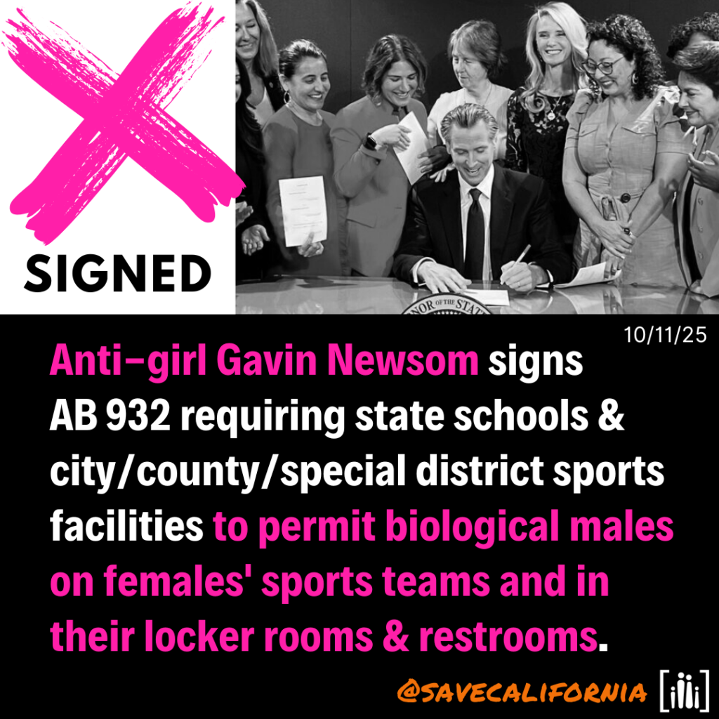 In sum, AB 932 tells public schools and city/county/special district sports facilities that biological males must be permitted to play on females’ teams and use females’ locker rooms and restrooms, and vice versa — or risk a private party lawsuit that aims to penalize Californians who support science and girls with financial damages.