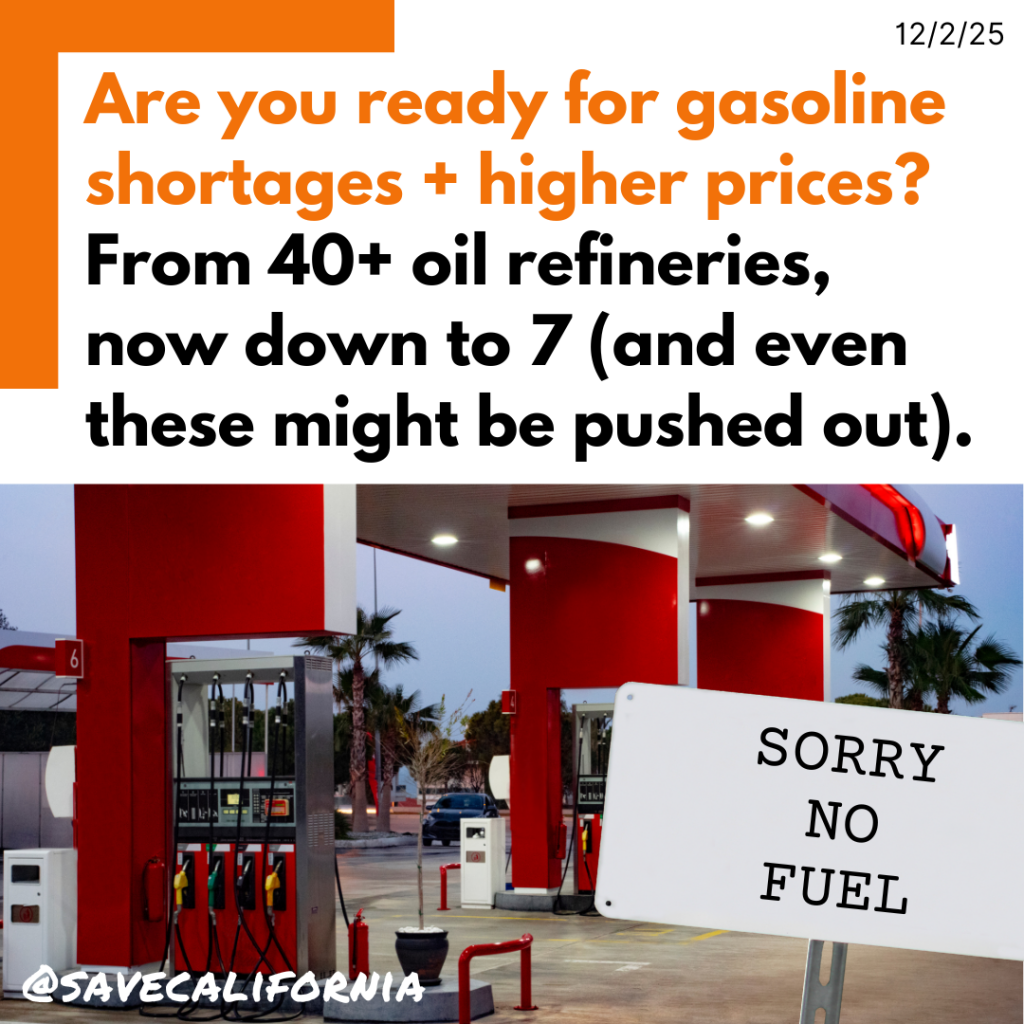 Newsom & the Democrats (who control 3/4ths of the seats in both houses of the California State Legislature) were warned in Spring 2025, but so far they’ve done nothing substantial to prevent this supply-chain problem: