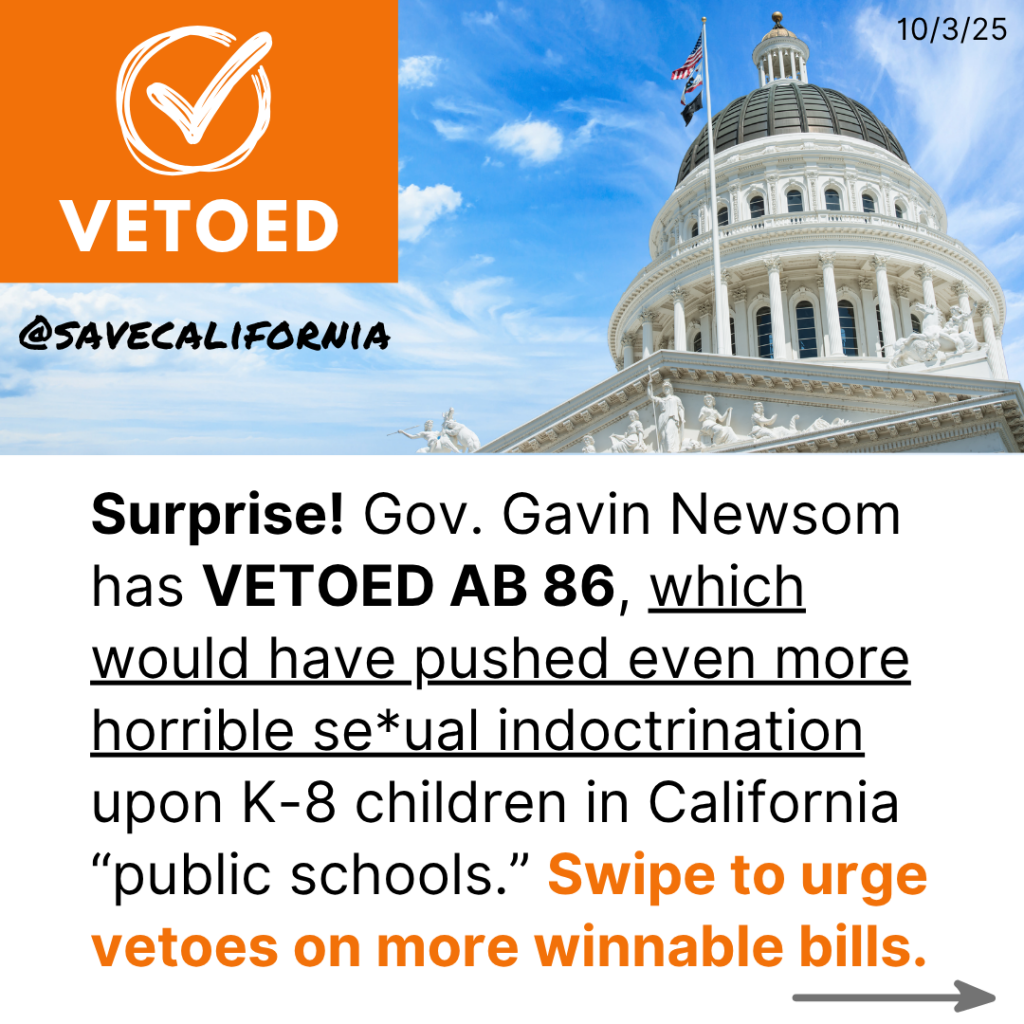 Similarly, Assembly Republicans should have opposed AB 86, instead of supporting this extreme, school sexual indoctrination bill. Newsom’s veto of AB 86 is to their shame.